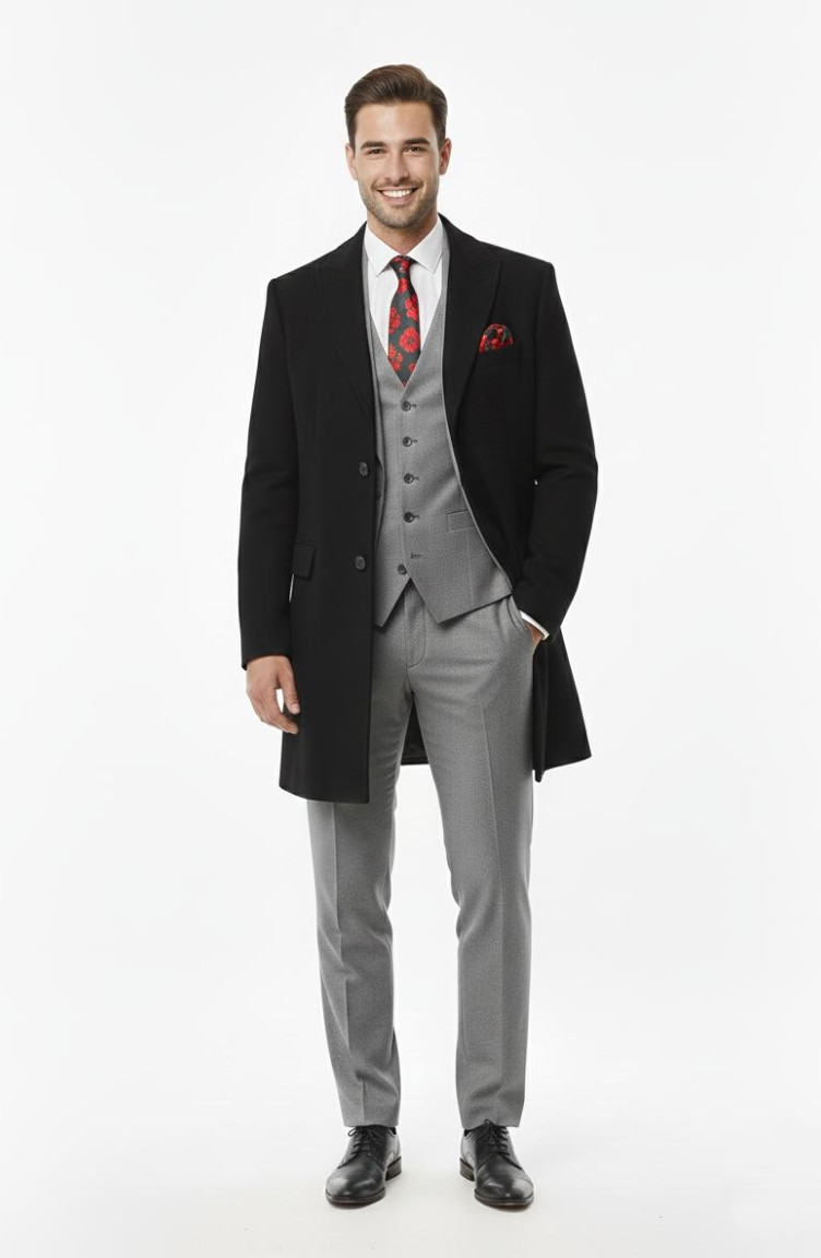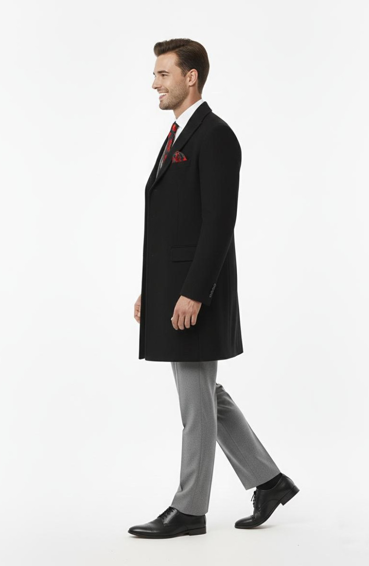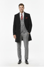Presto Erkek Sivri Yaka Kaşe Kaban Siyah 5014