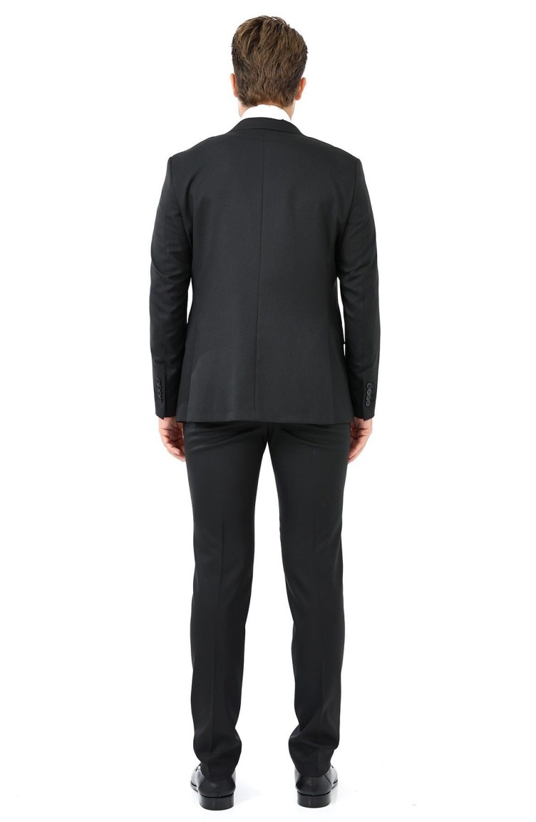 Erkek Yelekli Slimfit Takım Elbise 6 Drop Siyah 778-001